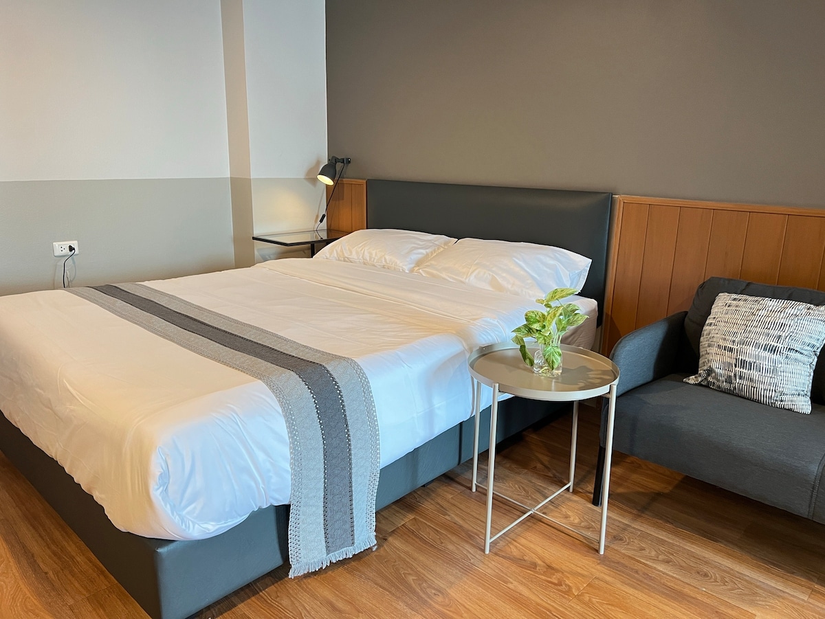 A newly renovated Studio room with 1 super comfy king-bed size, ensuite bathroom, mini pantry area with microwave refrigerator. Only 450 meters to BTS Sanam Pao and 650 meters to BTS Ari. ** Kindly read "Other Things to Note" and "House Rules" sections before you make a reservation :)