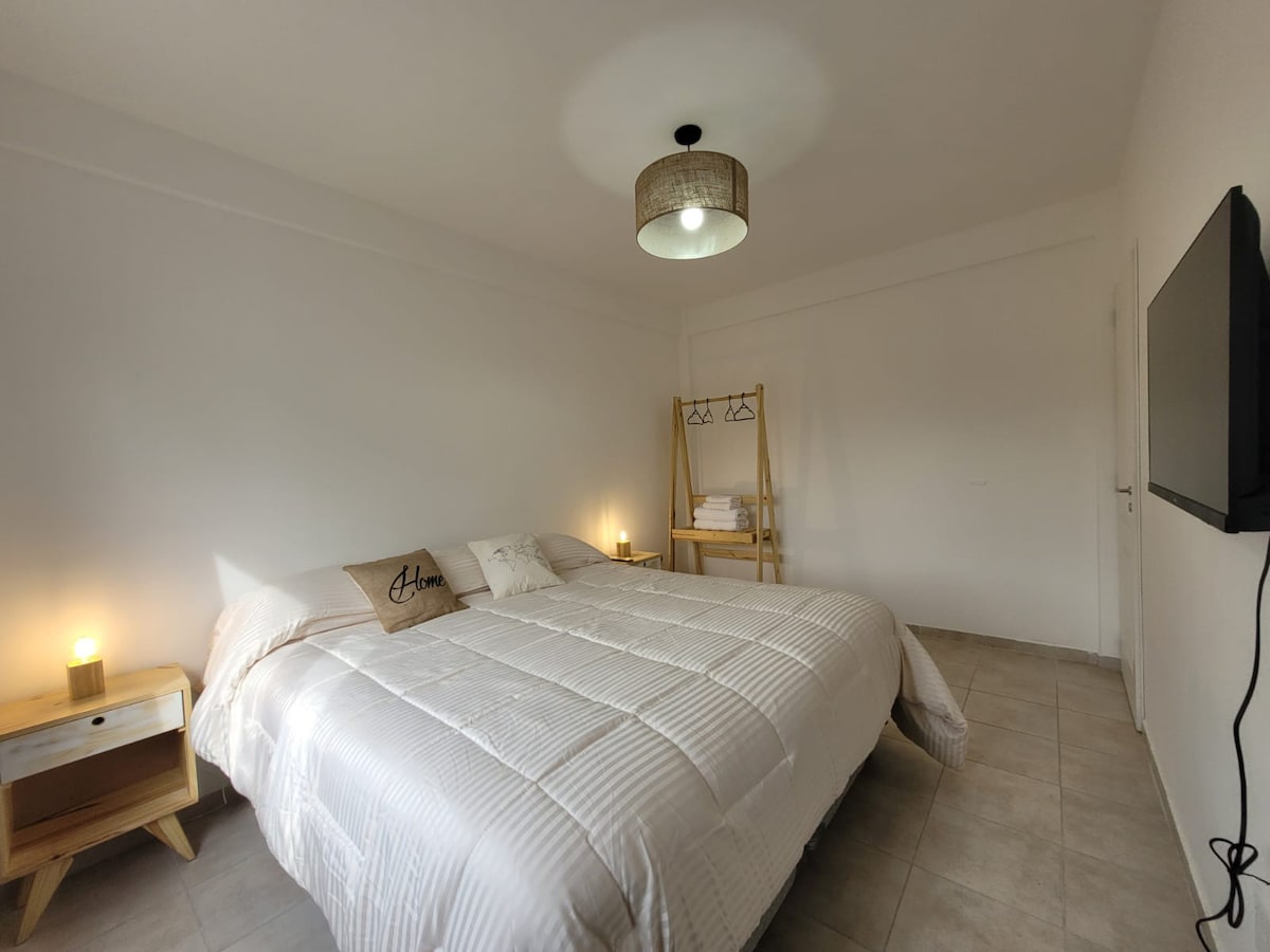 Luminoso departamento en loft con magnífica vista a los cerros y bosque. Cuenta con sommier hotelero lo que permite que pueda usarse modo matrimonial o twin. Ubicado en un predio boscoso con vegetación autóctona. Emplazado al final de una calle sin salida, brindando gran tranquilidad al lugar. La zona es muy segura y está pocas cuadras de completo centro comercial y de paradas de transporte público. Para acceder al departamento hay que subir un piso por escalera. Cuenta con garage y parrilla.
