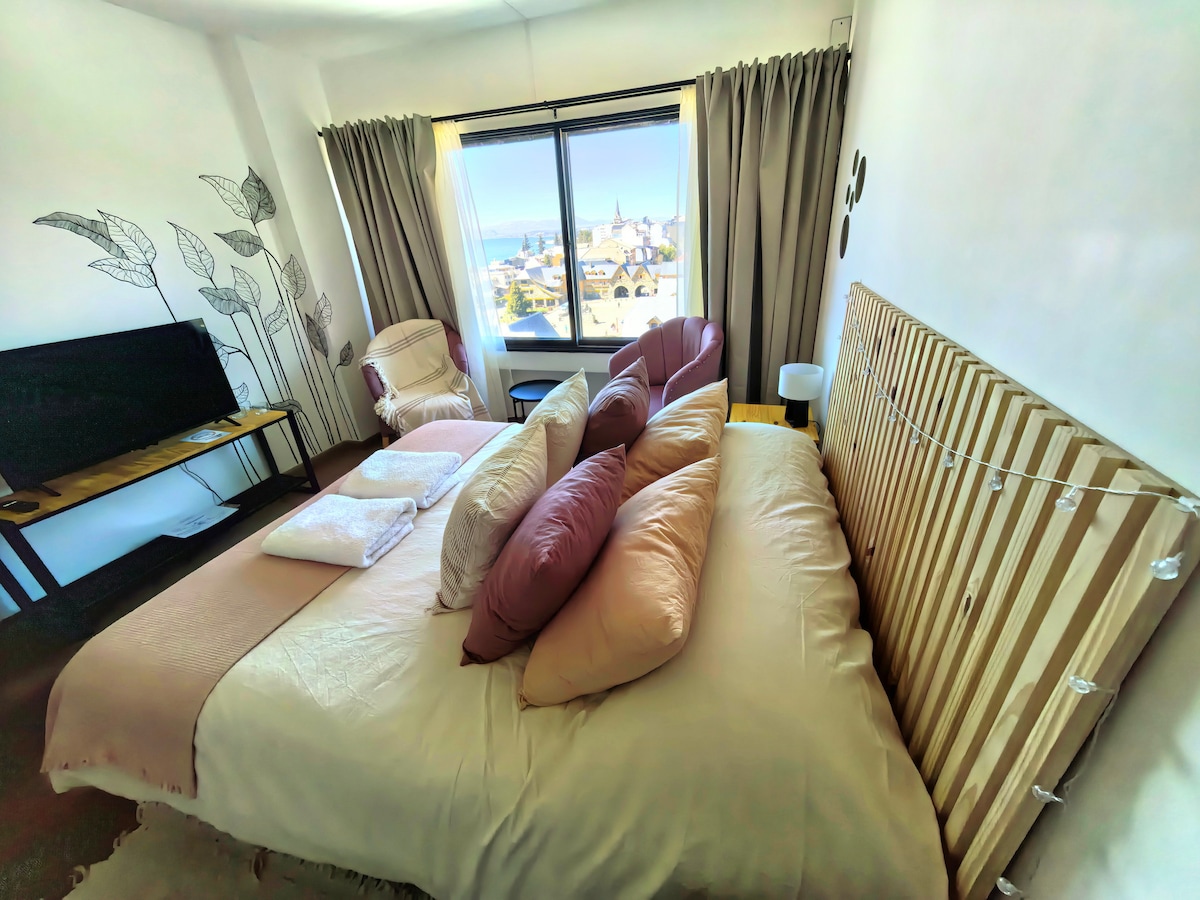 Hermoso departamento céntrico, muy luminoso, con vista al lago Nahuel Huapi y a los cerros López y Capilla. Excelente ubicación, a pocas cuadras del Centro Cívico y de todo tipo de negocios, supermercados; cervecerías y restaurantes. No apto menores de 8 años Servicio de Limpieza : En el caso de estadías largas pueden solicitar limpieza del alojamiento, coordinando la fecha y hora con el anfitrión, el costo del servicio será de 20usd adicionales solicitados por la misma plataforma.
