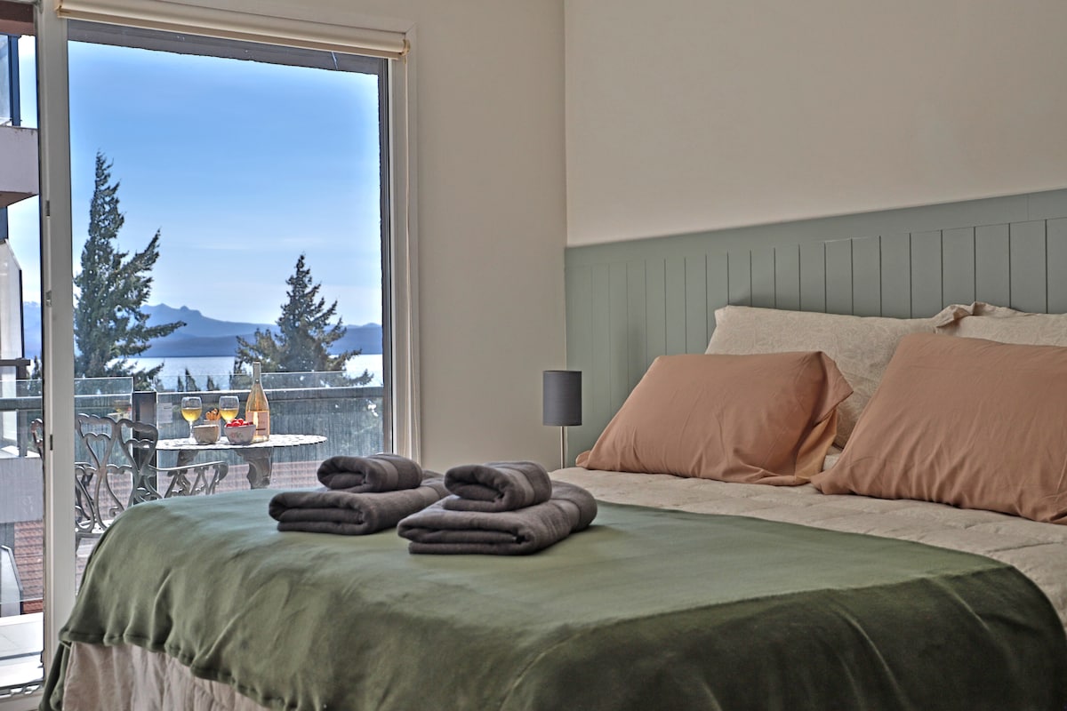 🏔️ Viví la experiencia de un apartamento nuevo con la vista más impresionante al lago, no tiene igual! Insuperables vistas al Cerro Catedral y Lago Gutiérrez en un cálido espacio para 2 personas. 🧘🏻♀️Relájate en plena naturaleza, a minutos del aeropuerto, el downtown y el mayor centro de esquí de Sudamérica. Nuestro espacio combina confort, estilo Barilochense y una conexión única con la naturaleza. 🖥️ ¡Streaming gratuito! 💌 Tenemos más unidades ❄️ AC ⭐ Top Airbnb de Bariloche
