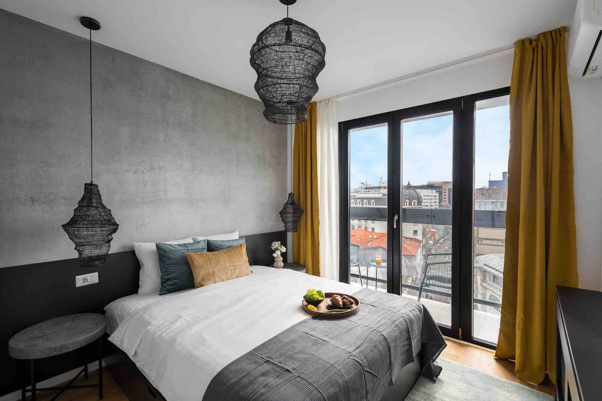 令人惊叹的露台明亮单间公寓| Amzei Square
