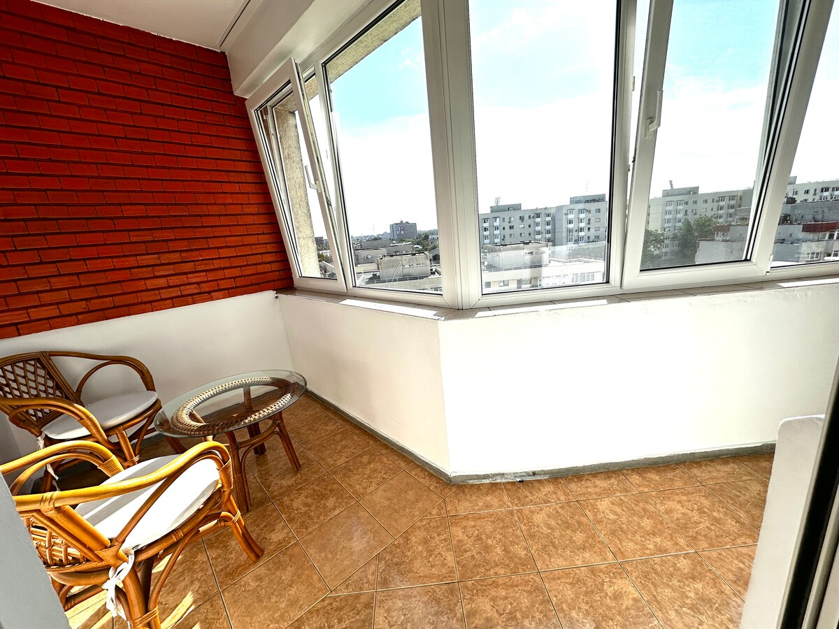 Bright and spacious studio apartment located in a 10 floors building, newly renovated with a fully equipped modern kitchen with an electric hob, integrated fridge and refrigerator, and all other necessary kitchenware for making a gourmet meal. It is placed in a great area with quiet neighbourhood, less than 15 minutes to City Centre, with direct public transportation to the old town, close to a big variety of beautiful parks and lakes such as Tei, Plumbuita, Circului. Free car park available.