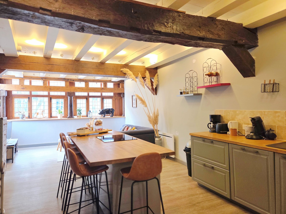 Très bel appartement agencé par un architecte au deuxième et dernier étage d'un bâtiment qui fut autrefois une brasserie prospère sur le port de Dinan. Tout le confort moderne à disposition, télé, WiFi, coin séjour, cuisine équipée ( lave-vaisselle, four, plaques vitrocéramiques, frigo, café Senséo, grille-pain, micro-ondes etc ...). Les lits sont faits, le ménage est inclus.Nombreux restaurants à deux pas, boulangerie, promenade à pied, bateau, vélo, petit train... Supplément 10€ si animal.