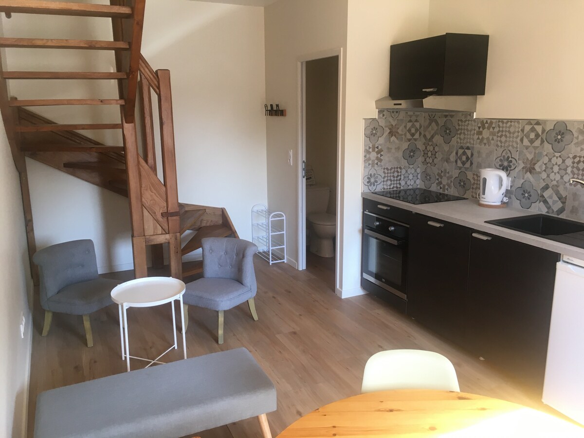 Studio de 28 m² classé 3 étoiles, à l'étage de notre maison individuelle, avec entrée indépendante par escalier extérieur. Cuisine parfaitement équipée : plaques induction, combiné four/micro-onde, grand frigo, lave-vaisselle, cafetière & machine à café Dolce-Gusto. Coin toilette avec douche. WC indépendant. Dressing et rangements. Vous pourrez profiter du jardin avec table, chaises et bains de soleil. Idéalement situé, à 5 min du centre ville et à 5 min de la gare.