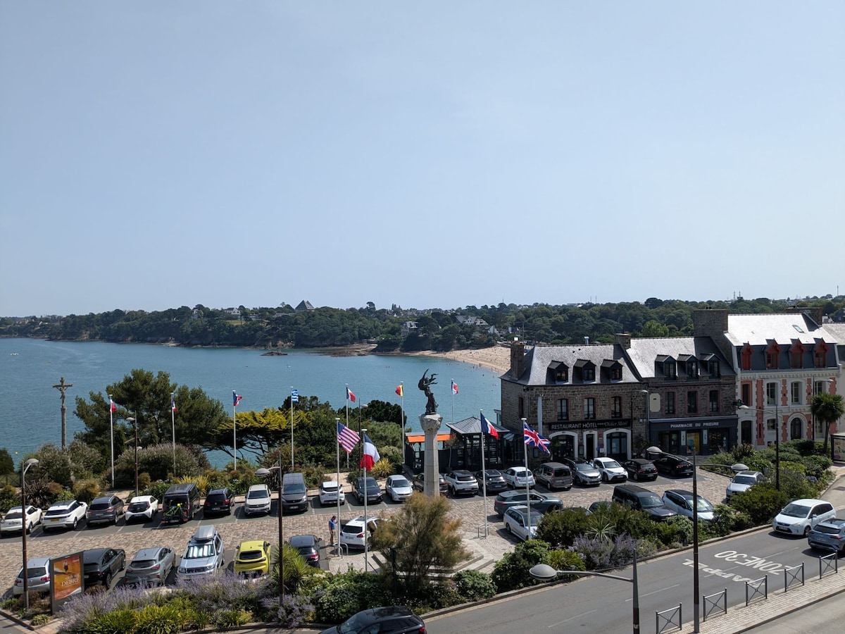 Appartement vue mer 100m2 en duplex (labellisé 3 étoiles), au 4ème étage sans ascenseur. Situation idéale cœur de ville, à 200m de la grande plage (de l’Écluse) de Dinard, commerces au pied de l'immeuble et à 300m du marché et des halles. A 200m de l’embarcadère de Dinard (liaison Dinard/St Malo) Possibilité de parkings gratuits ou payants à proximité. Emplacement idéal pour des vacances en bord de mer sans nécessité de prendre la voiture! ( la présence d’animaux n’est pas autorisée)