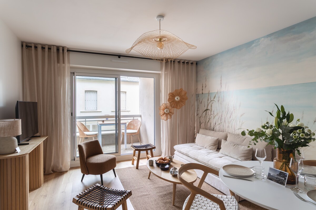 Appartement haut de gamme avec petite vue mer, accès direct à la plage principale, hyper centre. Entièrement rénové par architecte en 2018, situé dans un ancien hôtel emblématique. Au cœur de Dinard, la plage, le cinéma et l'ensemble des commerces et restaurants au pied de la résidence. La piscine olympique d'eau de mer et le Palais des Expositions ne sont qu'à quelques mètres... Le célèbre marché est à 5 minutes à pied.