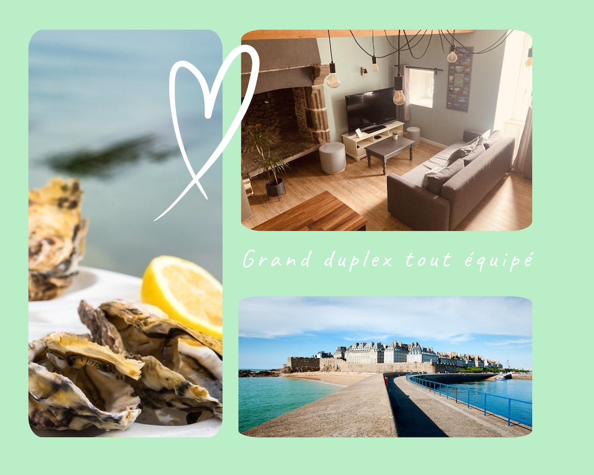 En plein centre de St Malo, à deux pas de la gare, d'Intra-muros et des plages. La résidence est récente, votre logement 48m² avec un grand balcon est conçue comme une vraie suite 4* avec des équipements haut de gamme. * une cuisine super équipée * un grand séjour avec canapé cuir convertible * chambre avec literie grand confort + coiffeuse * vaste SdB avec fenêtre extérieure * garage fermé Connecté internet par fibre, le logement est bien équipé pour le télétravail cable + réseau Ethernet