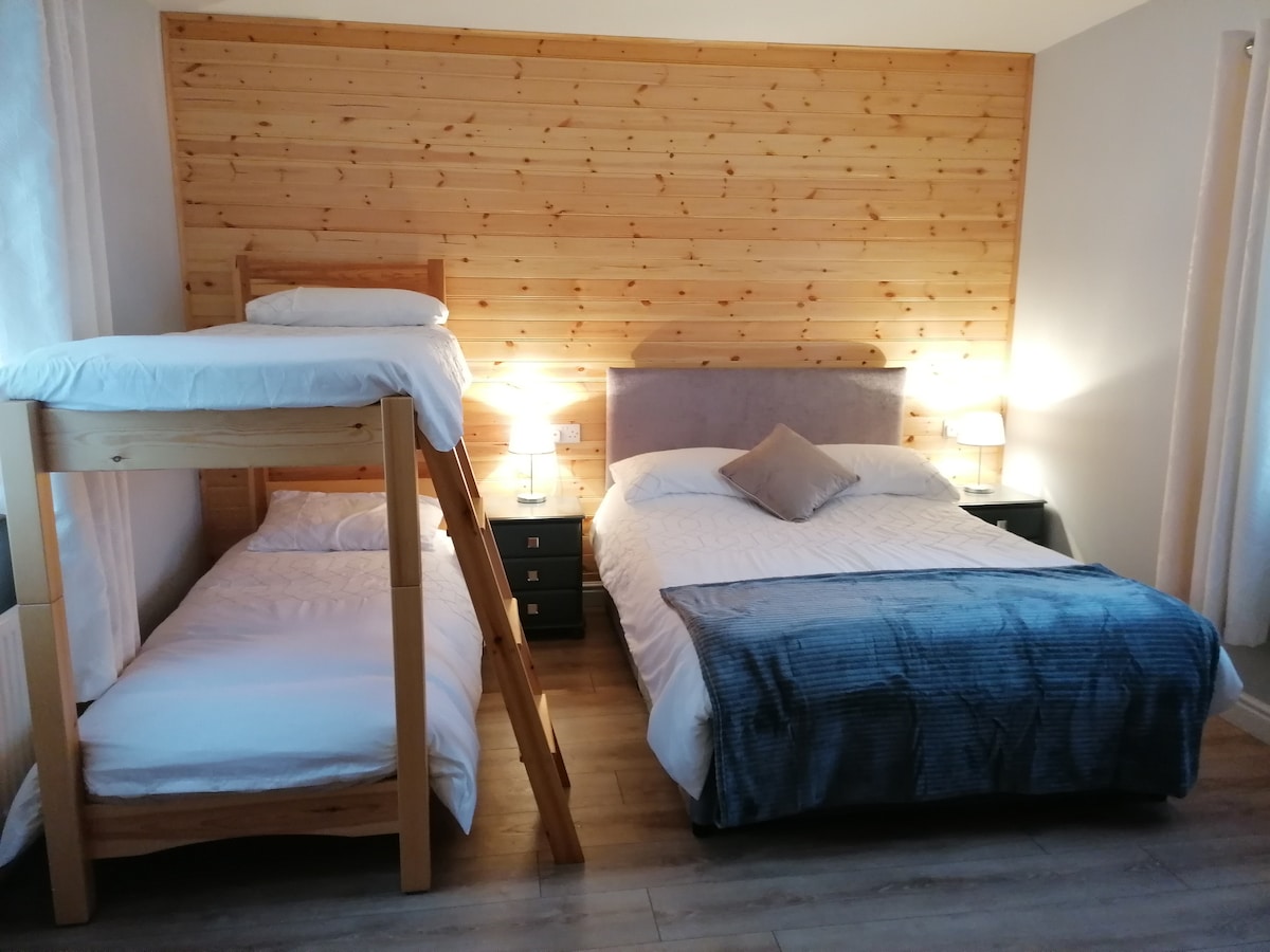 - Spacious and comfortable king-sized bedroom - Stylish bathroom with walk in shower - Living space with two couches (1 sofa bed), dining table and kitchenette - Kitchenette contains sink, fridge, microwave and kettle with dishes and cutlery - Apartment is self contained and separated from main house - Ample parking space - 5 mins walk to town centre and Killarney National Park
