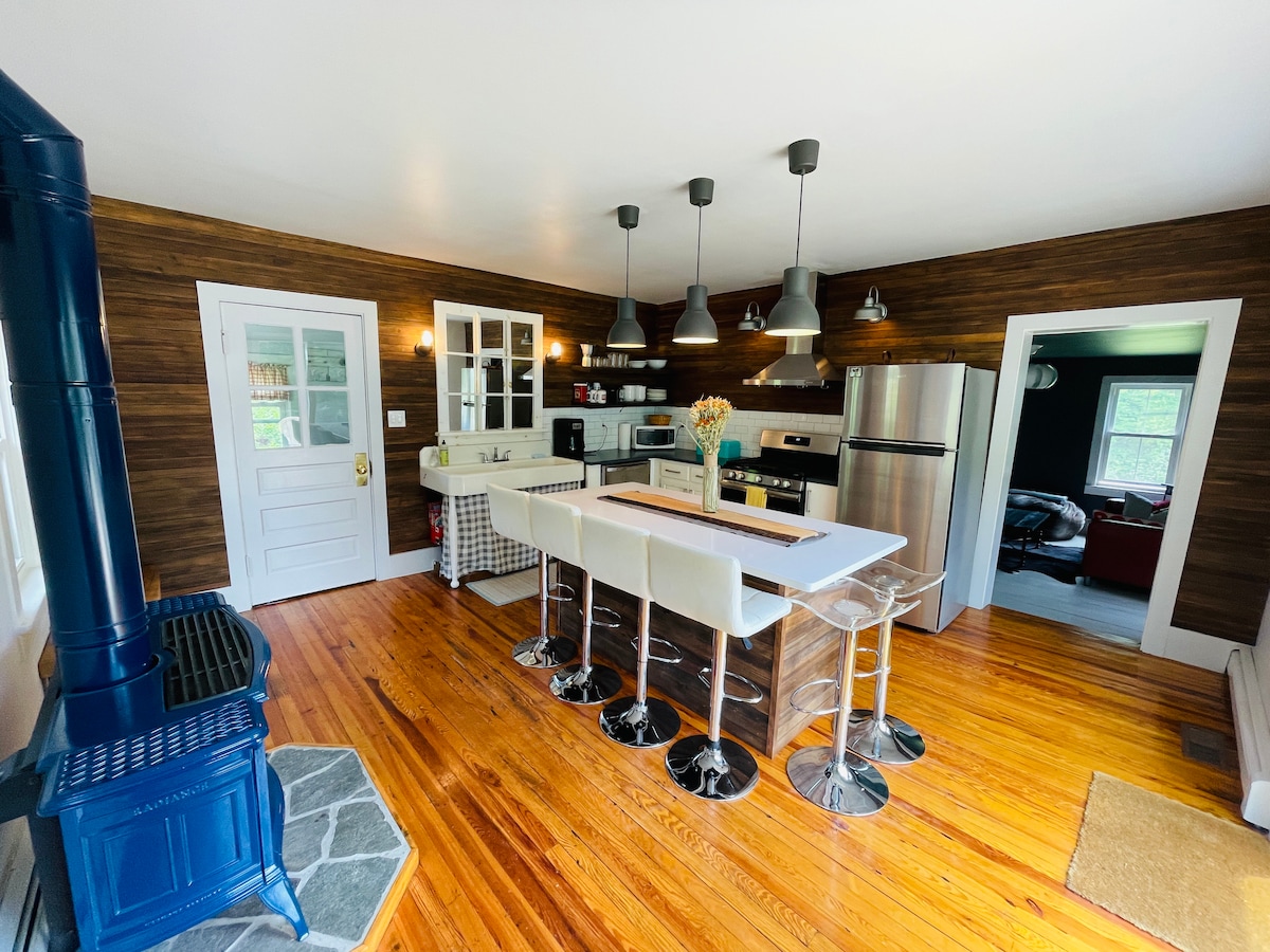 Intimate Lakefront country cottage on beautiful House Pond. Just 3 minutes from the Lake Wallenpaupack boat launch and 5 minutes from shopping, restaurants, bars, boat tours, fantastic hiking trails, and more. At this quiet, newly renovated (2022) retreat, you can experience great fishing, incredible sunrises and sunsets, bald eagles, blue herons, deer, various birds, and other wildlife. Relax and dine on the deck or lakeside flagstone patio while enjoying crackling embers in the fire pit.