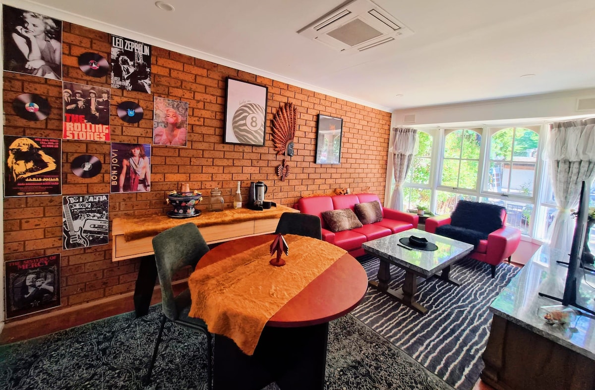 STYLISH AND EVERYTHING ALL NEW Completely gutted and refurbished. New furniture, new bathroom, new kitchenette. No expense spared. Located at the end of a quiet court with its own private, fenced garden Park your car and walk everywhere. Dog park 100m, Ovens River 150m, Bike Trail 2 blocks Town 7 minutes flat, easy walk. Or 10 minutes along the car free riverside walk Owned and operated by Holidaybright Official Site Dogs are 100% welcome inside and out