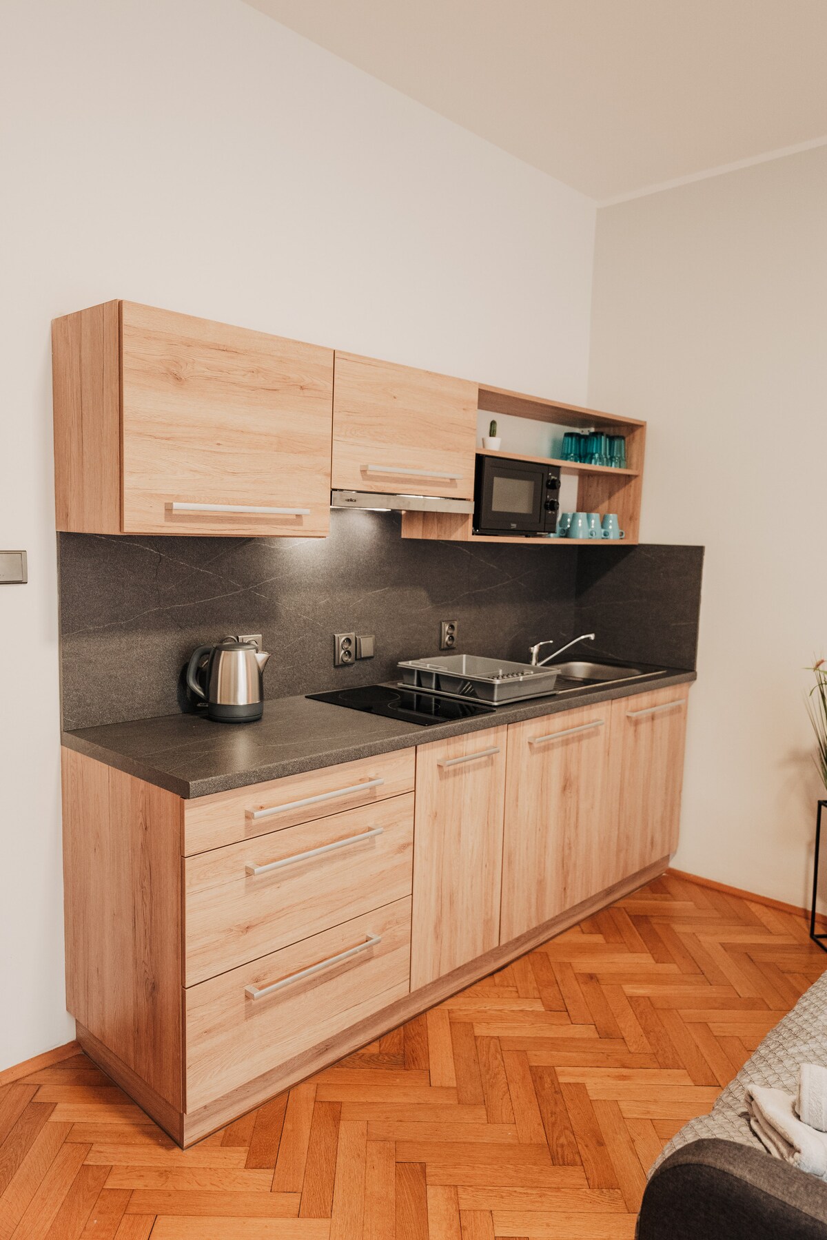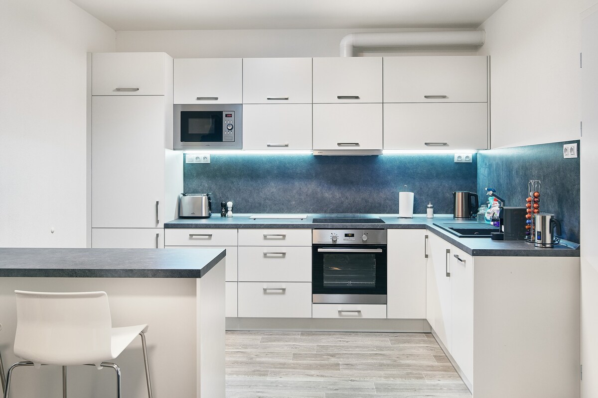 This modern brand-new apartment with a terrace is located on the first floor of an apartment building in the heart of Pilsen. You are welcome to use the fully equipped kitchen. The surface area of the apartment is 44 square meters. We speak english, german and french. Feel free to contact us for any further questions. We will be happy to give you tips regarding sightseeing, pubs etc. You can park your car in the underground garage directly in the building.