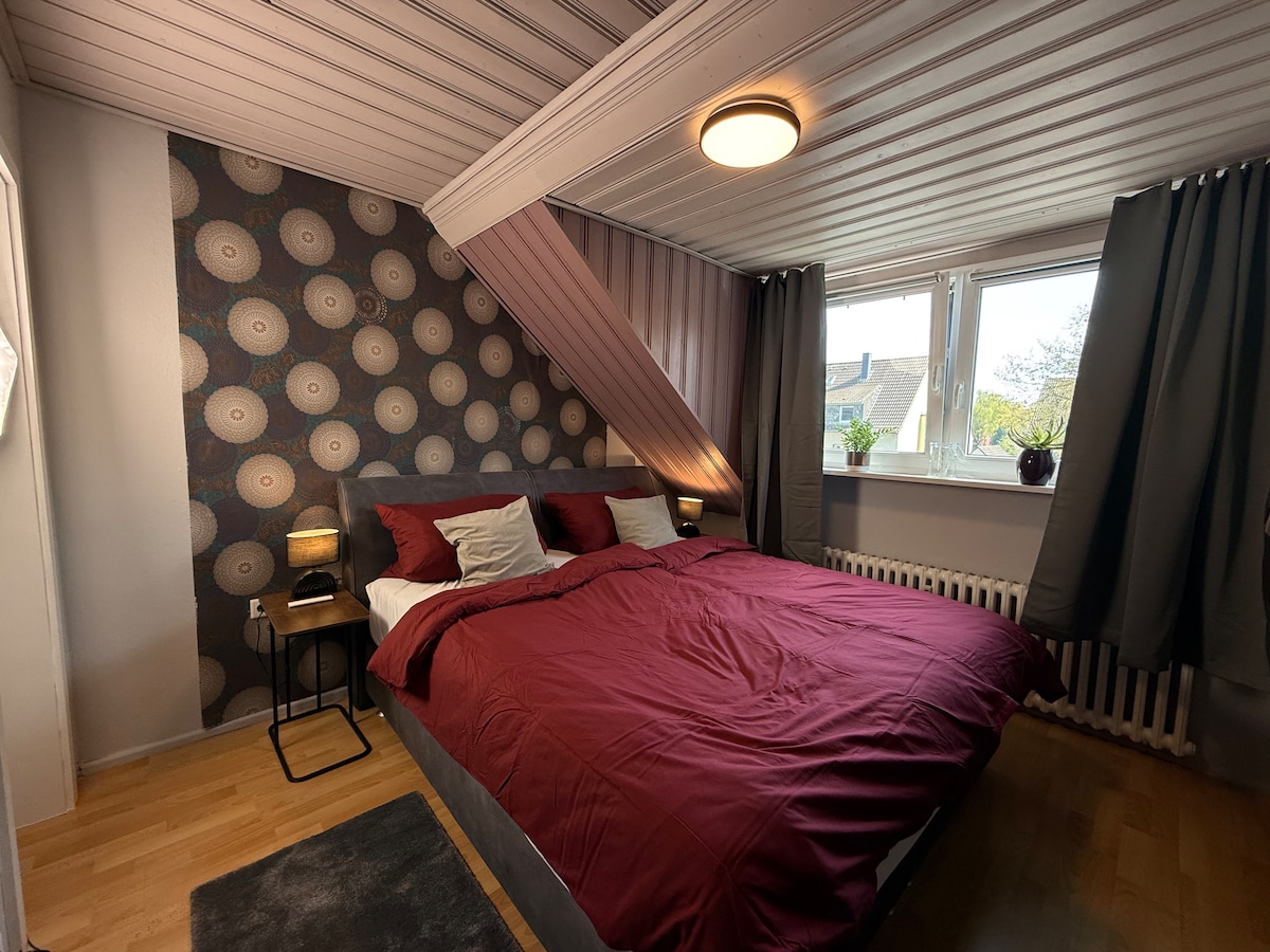 Gemütliche Dachgeschoss Wohnung in Gelsenkirchen Horst. Die Wohnung ist modern ausgestattet. Fussbodenheizung, elektrische Rollläden, W-Lan. Es gibt ein großes Schlafzimmer mit 2 Einzelbetten (diese können zusammengestellt werden). Kleines Schlafzimmer mit einem Einzelbett. Zudem bietet die Couch im Wohnzimmer 2 zusätzliche Schlafplätze. Zentrale Lage Haltestelle nur 2 min weit weg. Mit der U-Bahn U11 in 20 min nach Essen City oder 25 min bis Messe Essen. Gelsenkirchen Arena 33 min.