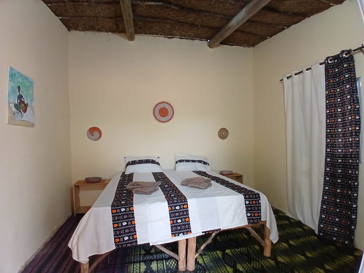Logement calme et reposant en bord bord de mer sur une plage sauvage. Non loin du village de pêcheurs et à seulement 5km de la ville de Mboro. Vous pourrez déguster des plats fraîchement préparés sur la terrasse tout en admirant le paysage. Il est possible d'accueillir jusqu'à 8 voyageurs en plus (il y a trois autres chambres doubles et une chambre lit jumeaux, chaque chambre possède une salle de bain) moyennant un supplément par chambre/nuit.