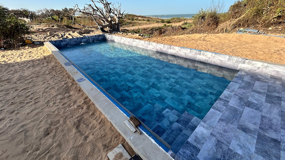 Gelegen op een rustig domein van 21.000 m² met 180 meter strand, biedt Baobab Beach Villa de perfecte balans tussen rust en tropische charme. Omringd door 16 majestueuze baobabbomen en voorzien van een zwembad met zicht op de oceaan is dit de plek waar de tijd stil lijkt te staan en de natuur de hoofdrol speelt. Slechts 500 meter van de lokale vissershaven en op 10 minuten wandelen van gezellige restaurants en strandbars, combineert de villa authenticiteit met comfort.
