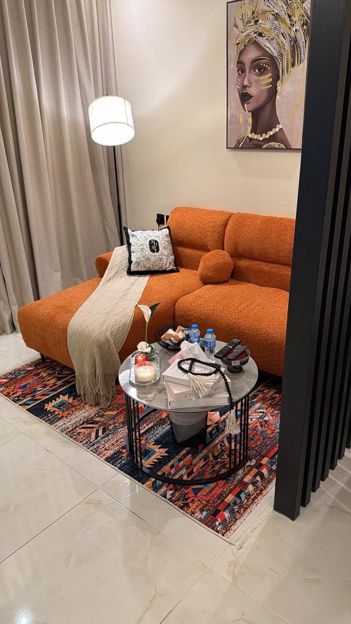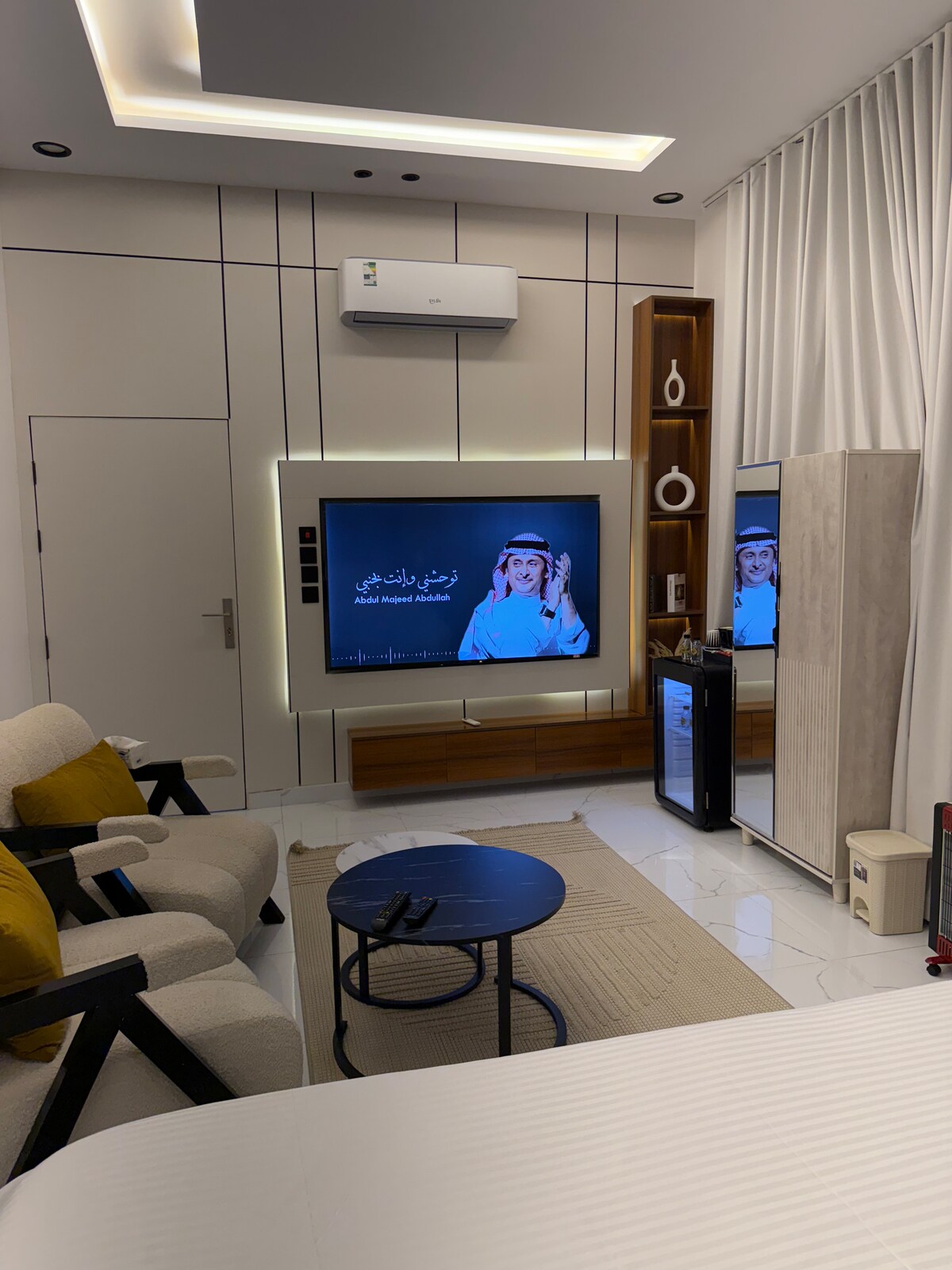 Craving a Riyadh escape? Discover your private oasis in this stylish apartment. Relax after exploring the city, or settle in for longer stays. Enjoy a fresh Nespresso and cinematic nights on the 58” screen. Located near Boulevard City, Riyadh Park, and top attractions. Need essentials? Shops and services are steps away. Staying longer? Message us for exclusive offers. Your unforgettable Riyadh stay begins here!