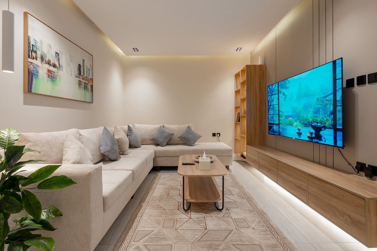 Welcome to your Luxury Condo, just 9 minutes from BLVD WORLD! Enjoy a prime location with easy access to vibrant restaurants, entertainment, and attractions, including KAFD. This stylish retreat features modern amenities and spacious living areas, making it the perfect base for your stay in Riyadh. Experience the best of the city right at your doorstep!