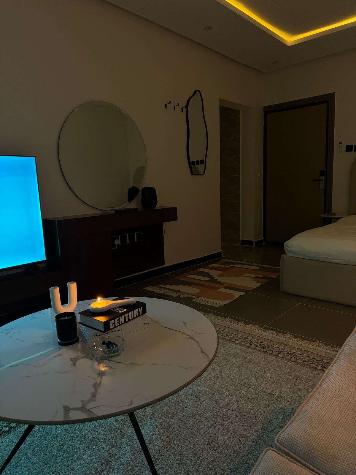 استيديو وسيع الموقع / حي حطين | الرياض 📍 بالقرب من جميع الخدمات والفعاليات 🛍️🎢 - صاد سكوير 3 دقائق - بوليفارد الرياض 8 دقائق - ليسن فالي 10 دقائق - المدينه الماليه 15دقيقه - الرياض بارك 13 دقيقه - المطار 17 دقيقه مكونة من : غرفة + جلسة + مطبخ + دورة مياه + جلسة خارجية خاصة الخدمات : • دخول ذكي • ثلاجة • شاشة 75 بوصة • شركة تنظيف بشكل يومي • نتفلكس + شاهد + يوتيوب