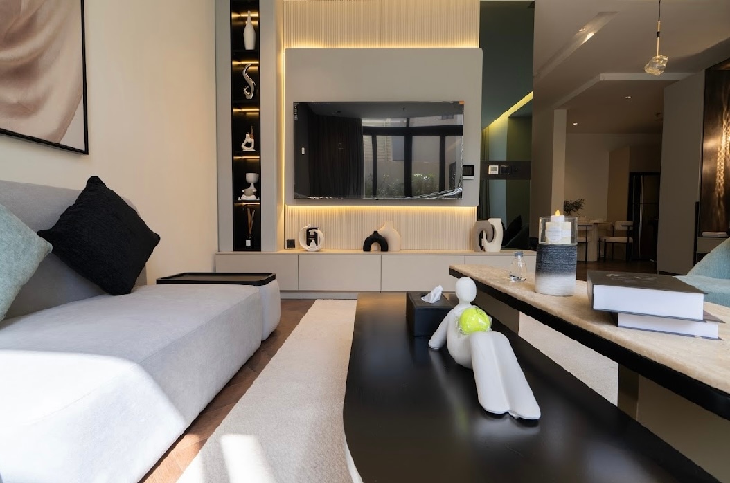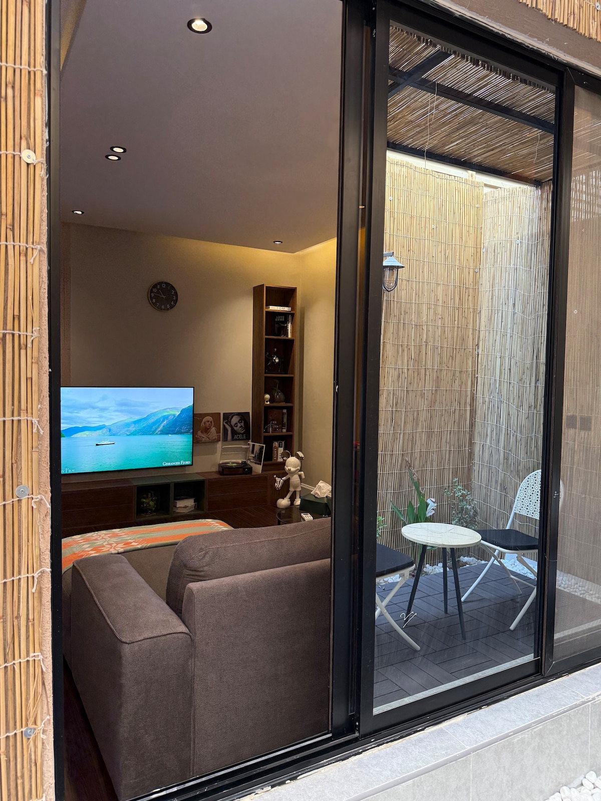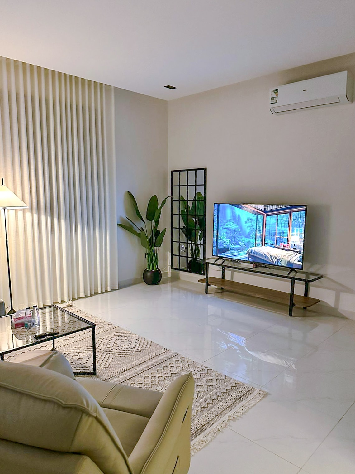 A modern apartment designed for an exceptional stay, located in one of Riyadh’s finest neighborhoods with a stunning view of KAFD. It features an outdoor seating area with a screen and projector for enjoyable evenings. For your comfort, the bed includes a high-quality 14cm extra layer. “We also offer event coordination services for special occasions (including cake and accessories) for an additional fee with prior booking, ensuring an unforgettable experience “