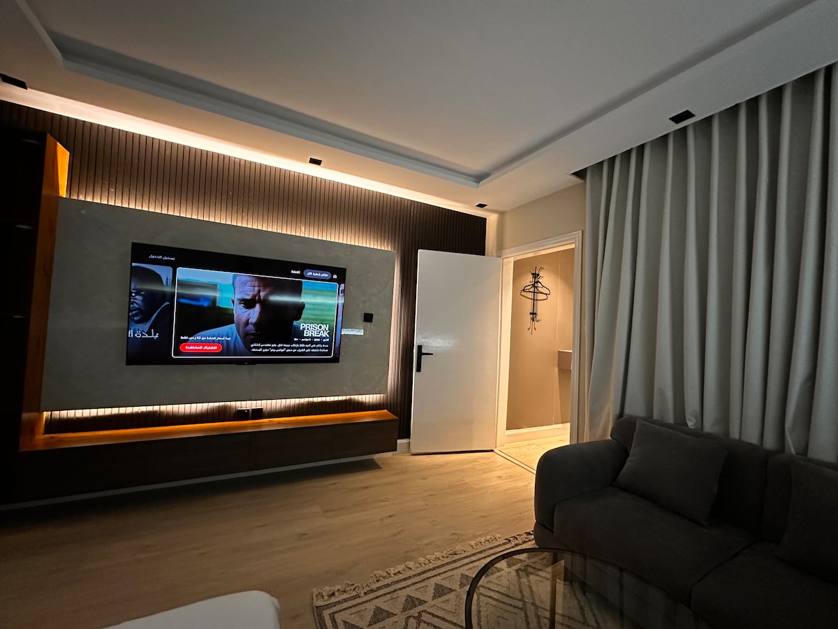 Attention to details: Luxurious Apartment, 5 minutes walking from Boulevard Riyadh City, next to Al Hilal Stadium (Kindom Arena), featured with: - Boulevard Riyadh City view. - One master room (king bed). - One bedroom (two queen beds). - Three bathrooms. - Wide living room with dining table. - Full kitchen. Maintaining high quality: - NADAV mattresses, bedspreads, and pillows. - Two Samsung smart TVs 65 inches. - Free unlimited (Wi-Fi). - Free washer. Wish you a pleasant stay ! 🌹
