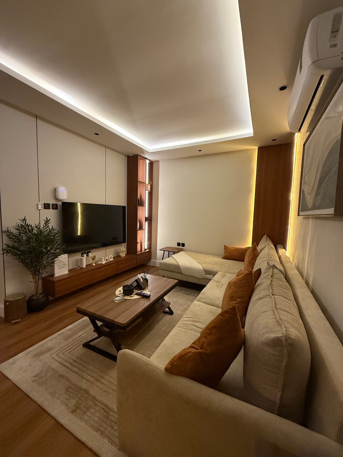 Luxurious apartment nestled within a stunning compound in prestigious neighborhood. Enjoy breathtaking views of the garden from your window, fully equipped kitchen, coffee maker, and a 75” smart TV. Ideally located near top tourist attractions and entertainment venues — including Diriyah, Boulevard City, Boulevard World, and more. The Sports Track is just a 2-minute drive, while the upscale Thagher Complex is also only 2 minutes away, offering a wide selection of restaurants, cafés, and shops.