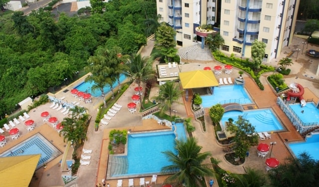O apartamento fica no Condomínio Parque das Águas Quentes. Conta com parque aquático com 3 piscinas, restaurante, lanchonete, sauna, academia, bar molhado, cascatas, sala de jogos e garagem (uma vaga). O apto é todo mobiliado (TV, sofá, mesas, cadeiras), duas suítes, uma com ar condicionado, cozinha completa, com micro-ondas, geladeira, freezer, filtro, fogão. O apartamento comporta até 5 pessoas (normas do condomínio).
