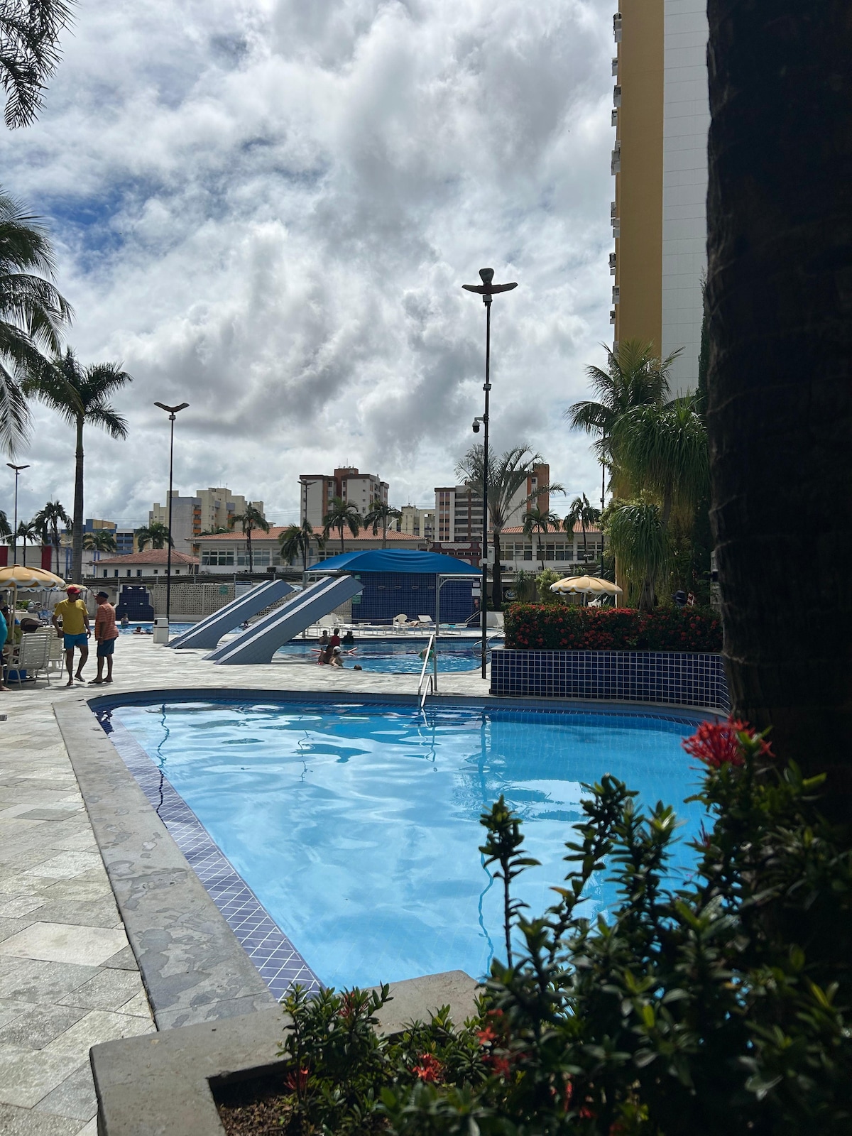 DI roma fiori e um condomínio completo, com piscinas 24 horas, Park recém reformado, lugar lindo, muitas arvores e jardins, possui serviço de camareira incluso, repõe papel higiênico e sabonete, televisões com canais fechados, internet em todo condomínio inclusive no apartamento, sauna a vapor e natural com água direto do poço, academia, brinquedoteca, quadra poliesportiva, piscina olímpica, toboáguas, restaurante, piscina de bar molhado. São 8 piscinas MULTA SE DEIXAR FOGÃO E VASILHAS SUJAS
