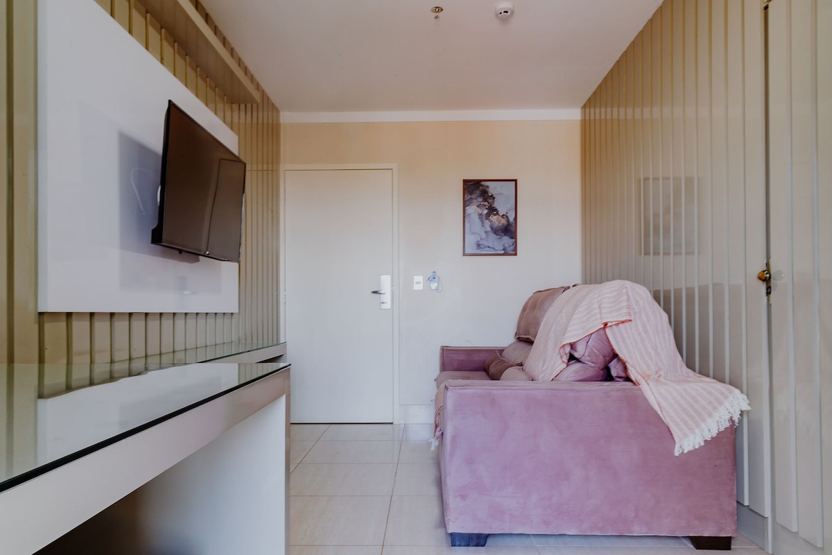 Com piscina aquecida ao ar livre, bar molhado e estacionamento coberto, oferecemos aos nossos hóspedes acesso GRATUITO ao diRoma Acqua Park, Splash e Slide, a 400 metros do Flat. (EXCETO Às QUINTAS-FEIRAS). Este apto dispõe de acomodações com uma sala com um sofá bi-cama ar-condicionado, varanda, frigobar, 2 TVs de tela plana, área de estar, microondas, chuveiro e secador. Os hóspedes ainda podem fazer uso de toalhas por um custo mínimo adicional.