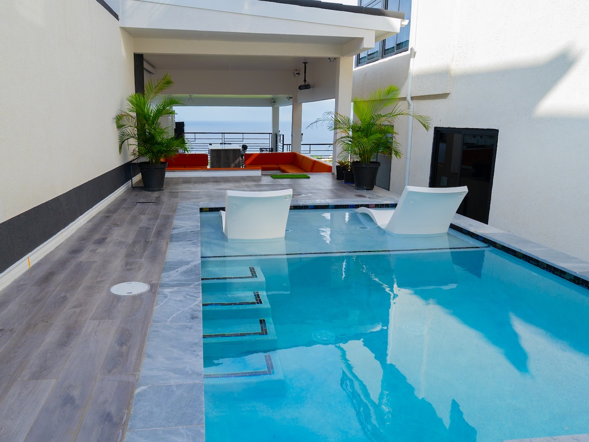 Not just a stay but an experience. Enjoy a stylish experience at this centrally-located villa. Luxe Oasis is an excellent choice for families and groups. It's the ultimate retreat. Relax on the rooftop terrace and spend time in your private rooftop hot tub or head over to the infinity pool for a swim while enjoying views of the Ocho Rios coastline and Caribbean Sea. Modern luxury decor is featured in all bedrooms, as well as en suite bathrooms.