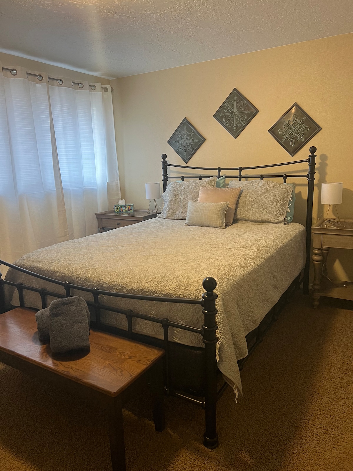舒适的SW博伊西地下室套房,配备加大双人床和双人床