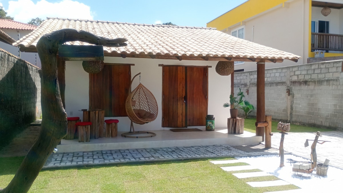 Casa de praia aconchegante no meio da Natureza a pasos do mar. O Lar de ferias para quem procura conforto e tranquilidade. Ideal para desfrutar momentos muito especiais em casal ou familia com privacidade e segurança. Varanda e Espacos priv. para relax no jardim, posibilidade de uso da área de lazer de resort beira mar. Wi-fi home-office. TV 32" com Netflix. Parking priv. interno. Facil e rapido acceso ao centro de Arraial e de Pto.Seguro. Ar condicionado. Churrasqueira . Não é condominio.