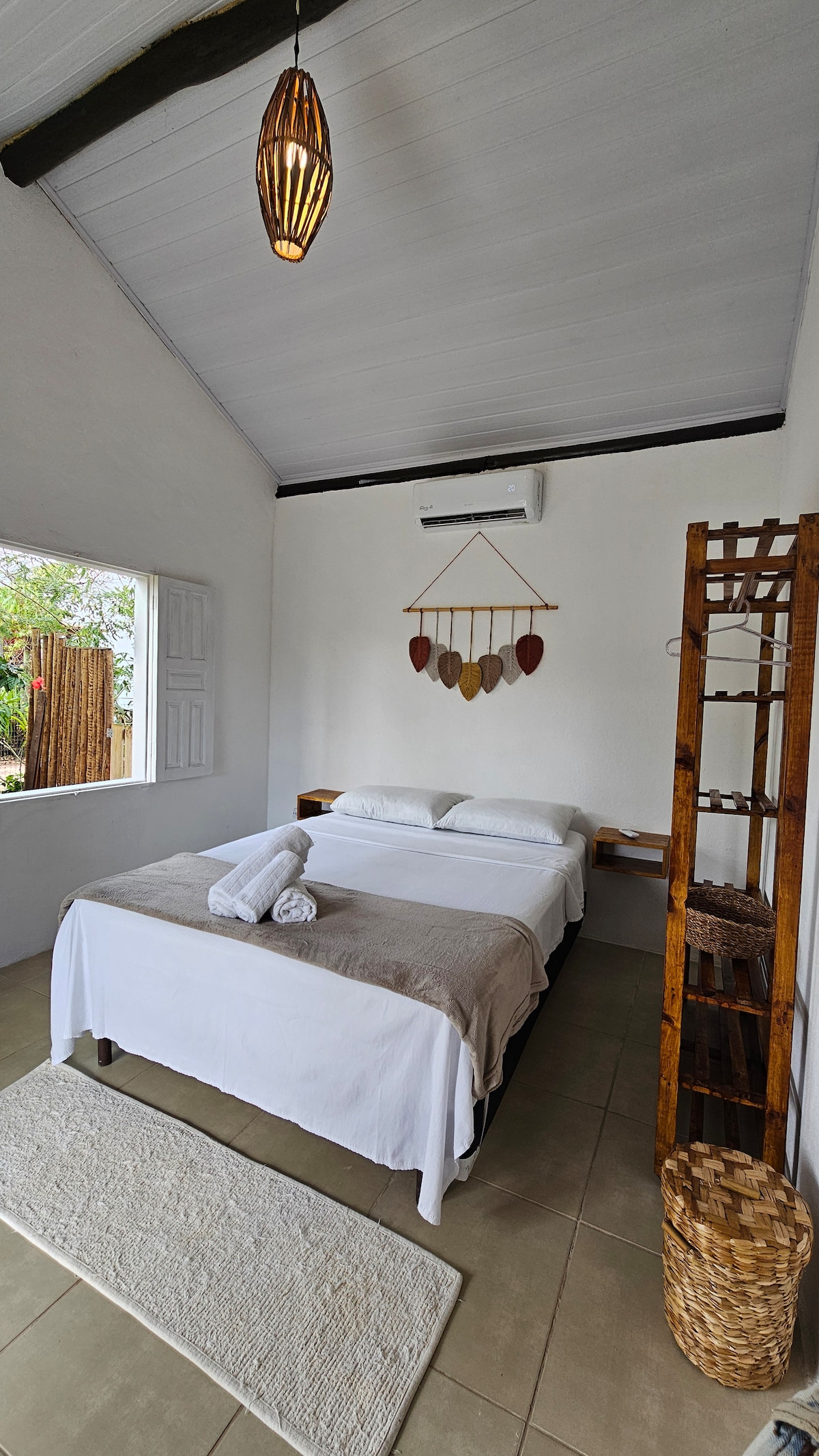 The Caju Chalet reflects the owner's love and care. Initially built as her own home, it has been transformed to warmly welcome new guests. It features a large suite, a delightful balcony with a hammock and a table for dining or a home office, and a fully equipped outdoor kitchen. The Caju Chalet boasts a spacious private garden in addition to the common area. It's ideal for two people, but if needed, we have an extra trundle bed for a third person.