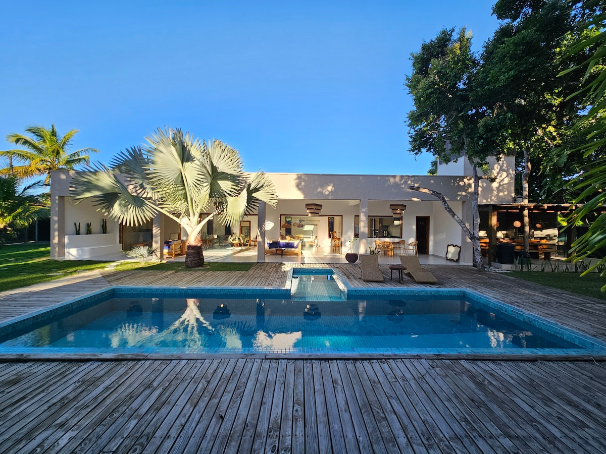 Casa 5 is located 25 mt from the sea, with direct access to the beach and 15 mt from the pool. Recently renovated and tastefully furnished in Italian style. Fully equipped with all the necessities. It consists of a living room, an open kitchen with a large pantry, three suites, and a wonderful balcony with churrasqueira. Free Wi-Fi, free parking, and 24-hour security are available. Direct access to the famous Rua do Mucugè, which can be reached in 2 minutes on foot, without needing to use a car