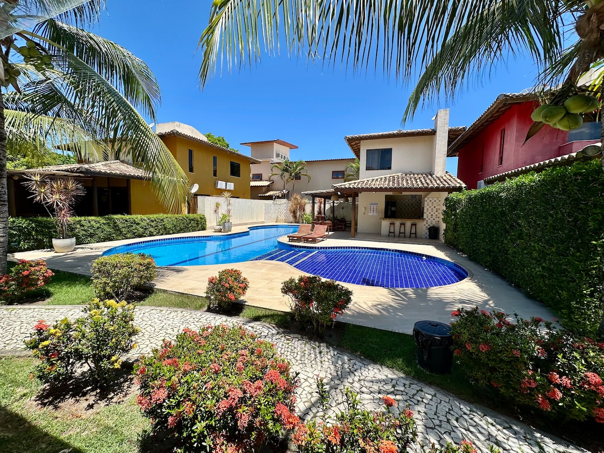 Casa aconchegante e charmosa muito bem decorada e totalmente equipada para sua conforto e uma estádia inesquecível pé na areia. Casa duplex com sacada com vista para o mar, dentro de um pequeno condomínio do 9 casas com acesso direto para a Praia Araçaipe pelo jardim. O condomínio tem área do lazer, churrasqueira e piscina. Lugar bem tranquilo e ideal para famílias e casais desfrutarem suas férias. Ficando só 30 passos até a praia que virar uma piscina natural quando o mar está baixo.