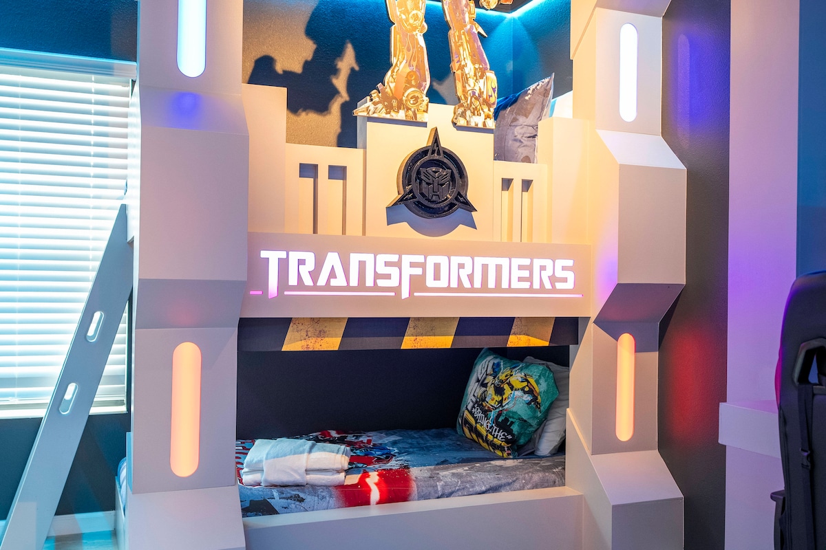 The Magic Galaxy – an affordable 3 bedroom, 2 bath condo in the gated Windsor Palms resort, known for its cleanliness and thematic charm. The retreat features themes from Star Wars, Mickey Mouse, Jurassic World, and Harry Potter. Enjoy resort amenities like a pool, spa, splash pad, courts for basketball, tennis, and volleyball, a movie theater, game room, gym, Tiki bar and grill, and a sundry shop.