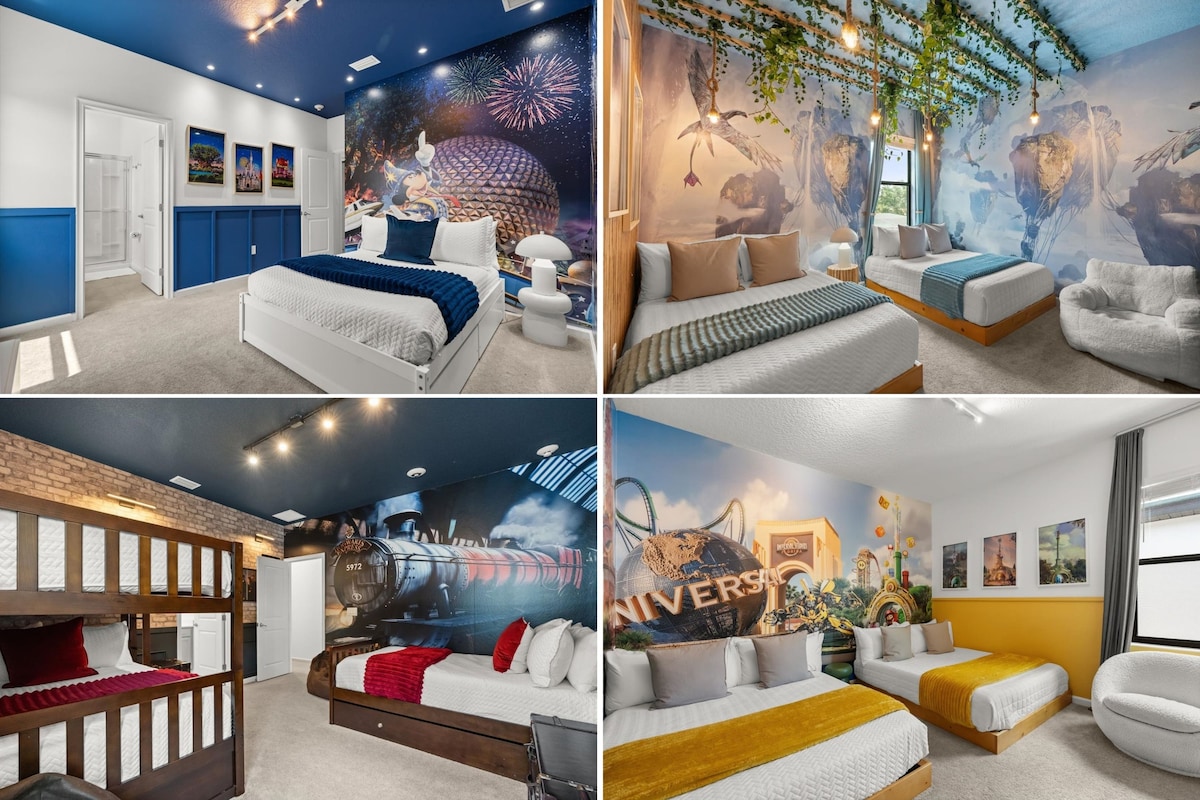 Escape to this brand new, stunning 5BD/5BA home in Paradiso Grande Resort. Perfect for families, with Mickey and Minions themed rooms and a Mario Bros games room featuring PS5, arcade games, pool table, and foosball. Relax in spacious living areas, cook in the fully equipped kitchen, and enjoy the private screened pool and patio grill. Minutes from Orlando’s top parks and full access to resort amenities. Book your perfect Florida getaway today!