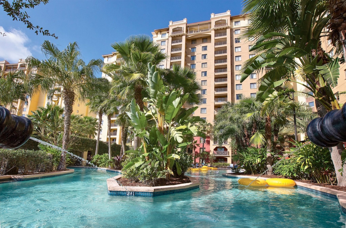 Enjoy a luxurious resort in Orlando, Florida. With 164 acres, it features Mediterranean architecture and tropical gardens. It offers 4 pools, golf courses, tennis, gym, playground, store, and restaurant. Plus, it's close to major attractions! Please continue reading before booking, thank you.
