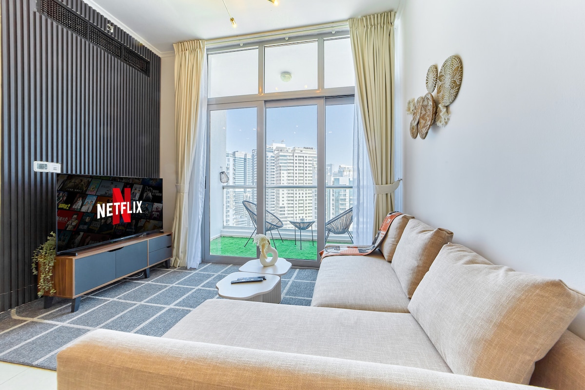 Your deluxe SMART home is 10 minutes from the beach in the upscale Jumeirah Lakes Towers neighborhood. Use your voice to control the lights and play music, as well as enjoy the comfy day bed as you watch movies on a 50 inch 4K TV. You are only one minute from the metro with free parking, gym, and sauna. Life can’t be more convenient with dozens of restaurants and shops at your doorstep. All are welcome! Note: Building swimming pool is closed for maintenance until further notice.