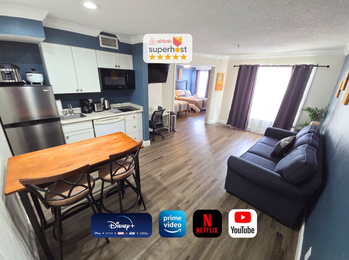 Welcome to Your Magical Gateway – Just 10 Minutes from Orlando's Magical Parks! Location: Perfectly located for Disney and Universal, our apartment offers a peaceful retreat with all the comforts of home. Whether you’re here to explore the magic unwind, or even stay for longer terms, you’ll love every moment of our cozy space. The property sleeps 8 people! PLEASE CONTACT US TO INQUIRY ABOUT ADDITIONAL POTENTIAL DISCOUNTS FOR MULTIPLE DAYS STAY