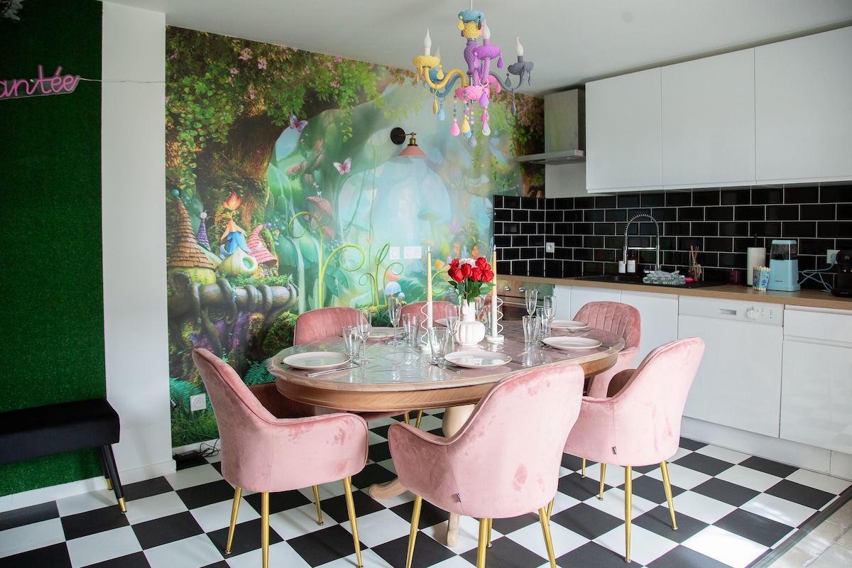 Cet appartement, entièrement refait à neuf se trouve au cœur de Chessy, plusieurs restaurants, une supérette et une boulangerie se situent au bout de la rue. Situé à 5 minutes de l’entrée de Disneyland Paris en voiture et à moins de 20 minutes à pieds. Il est également à 6 minutes de marche du centre commercial : Val d’Europe. La décoration évoque l’univers Disney, avec sa chambre à thème Peter Pan et une La belle et la bête, quelques touches disney sont présentes dans les autres pièces.
