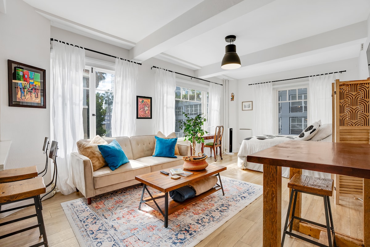 Welcome to The Daisy Suite— the historic gem nestled between the ocean and the Arts District of downtown Long Beach. This beautifully-renovated studio offers an open floor plan and views of the marina. Every room has been thoughtfully curated to ensure your stay feels elegant, elevated, and true to the 1920s period. The condo is walking distance from the Long Beach Convention Center, Pine Avenue, The Pike, and multiple boutiques, restaurants, and bars.