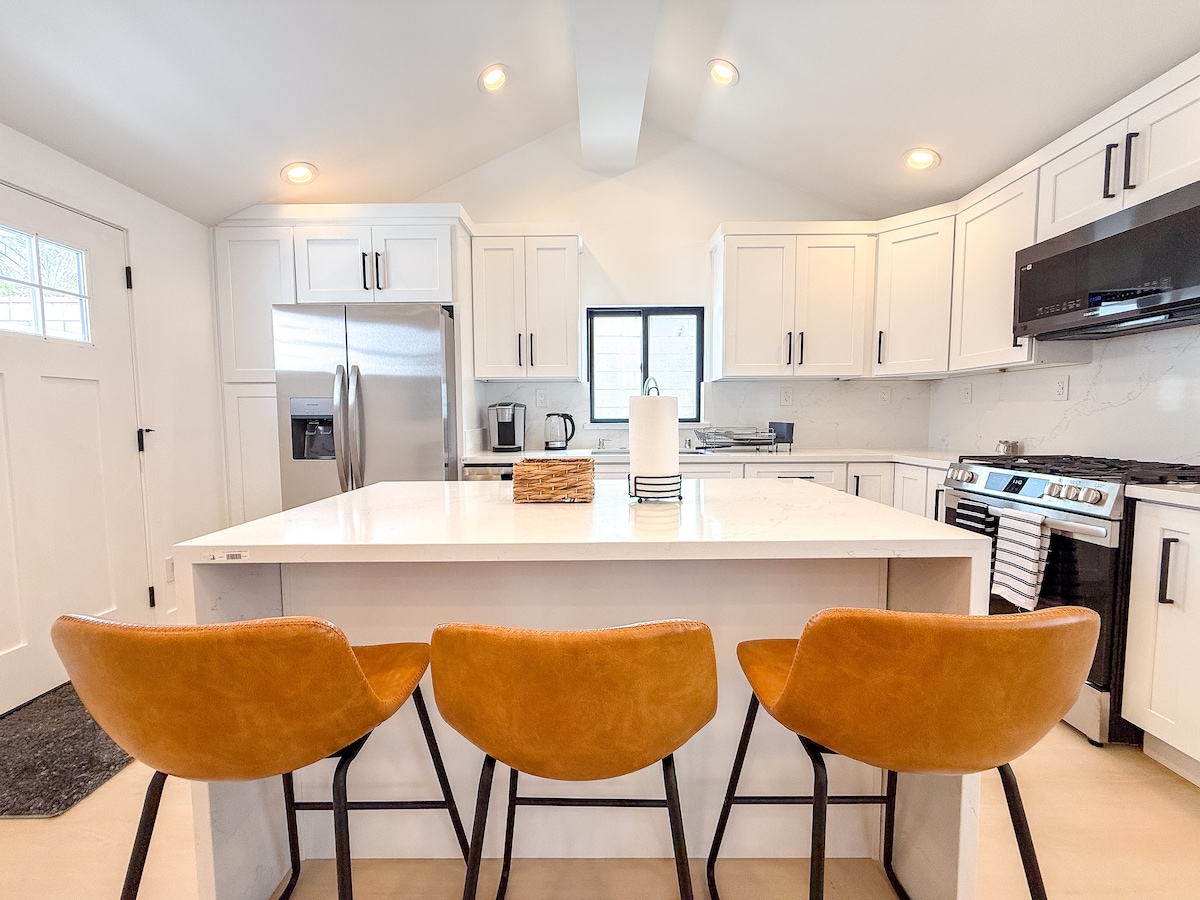 Design refresh in progress! Our studio has all you need for a wonderful vacation as a solo traveler or with a loved one. This is a brand-new guesthouse with two other units on the property, both available to book on Airbnb. Built with love and care, indulge in the luxury of a roomy walk-in closet, a refreshing en-suite bathroom, and a well-stocked kitchen. There is also a combo washer/dryer for your convenience.