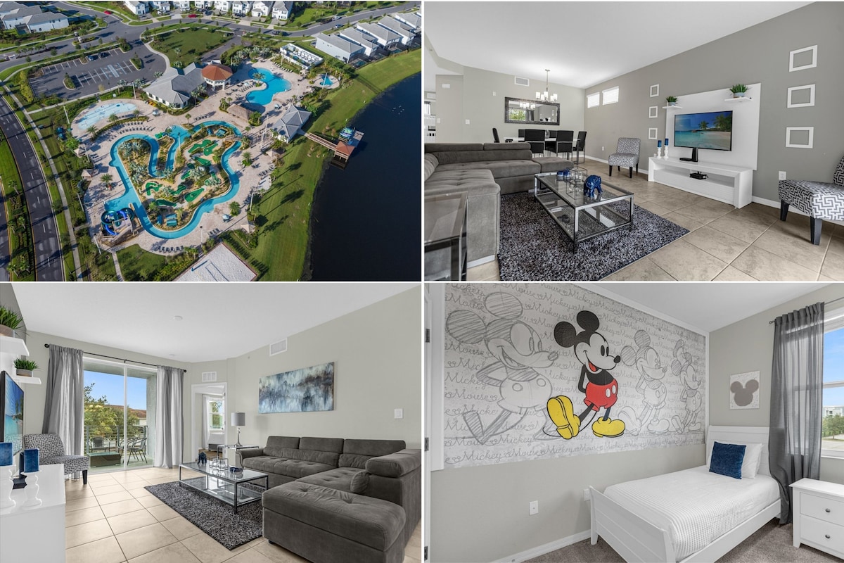 Minutes from Disney World Orlando Florida, Modern & Stylish 2bed/2bath fully equipped apartment for up to 7 guests, located in the family friendly Storey Lake Resort. FREE Clubhouse & WATERPARK amenities: Heated Pool, Hot Tub, Kids Splash Zone, Water Slides, Lazy River, Gym, Tiki Bar, Ice Cream Shop & more. The apt is located: 10 min drive to DISNEY, 25 min to UNIVERSAL STUDIOS, 18 min to SEA WORLD. FREE Parking. FREE Waterpark. No extra FEES. Gated Resort with Security 24/7 & Self check-in!