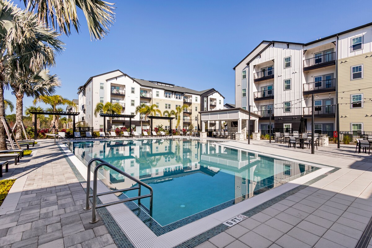 Welcome to our stylish oasis in Kissimmee, which seamlessly blends sophistication with a laid-back vibe. Your stay begins in a professionally cleaned apartment for your full enjoyment. Discover resort-style amenities – a sparkling pool, a fitness center, and hammocks, offering the luxuries of a five-star retreat. Conveniently located with in walking distance of theme parks, restaurants, and shopping. Book now. We can't wait to host you in our little slice of paradise!