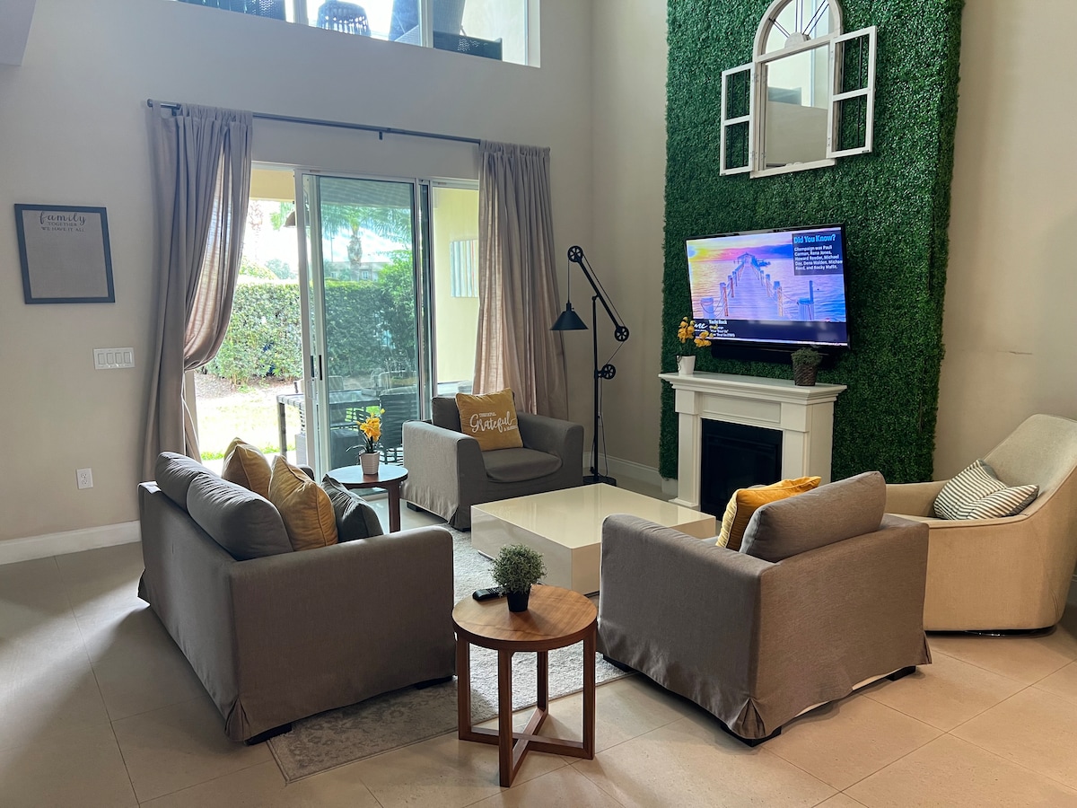 Stay in this 4BR/3BA Orlando resort townhome just 25 minutes from Disney & Universal. Featuring a first floor bedroom and first floor bathroom. Enjoy a spacious living room, fully equipped kitchen, and dining area for family meals. The private patio is great for morning coffee or evening relaxation. Guests also have full access to amazing resort amenities including a lazy river pool, hot tub, water slide, fitness center, arcade, and clubhouse.