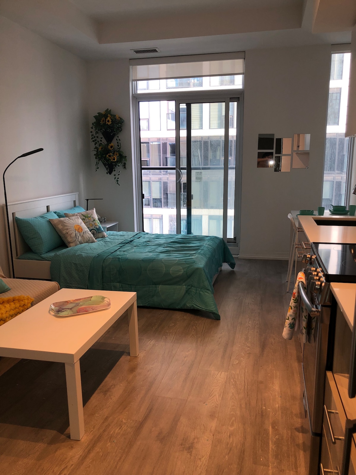 Welcome to your modern oasis in the heart of downtown! This spotless 1-bedroom condo with a private balcony and fully equipped kitchen is perfect for your city stay. Located 8-min walk from Eaton's Centre, Subway, right across from TMU, steps to St. Lawrence Market, Lake Ontario, Toronto Harbourfront and Business/Entertainment Districts. Early check-in 10:00am! Late check-out 3:00 pm! Enjoy nearby restaurants, Distillery District, ROM and Yorkville. Ideal for exploring all Toronto has to offer!
