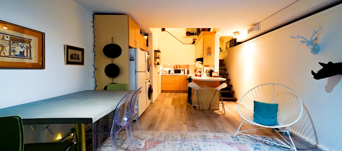 平均评分 4.9 分(满分 5 分),共 103 条评价1300平方英尺独特的艺术家阁楼。市中心的马车房