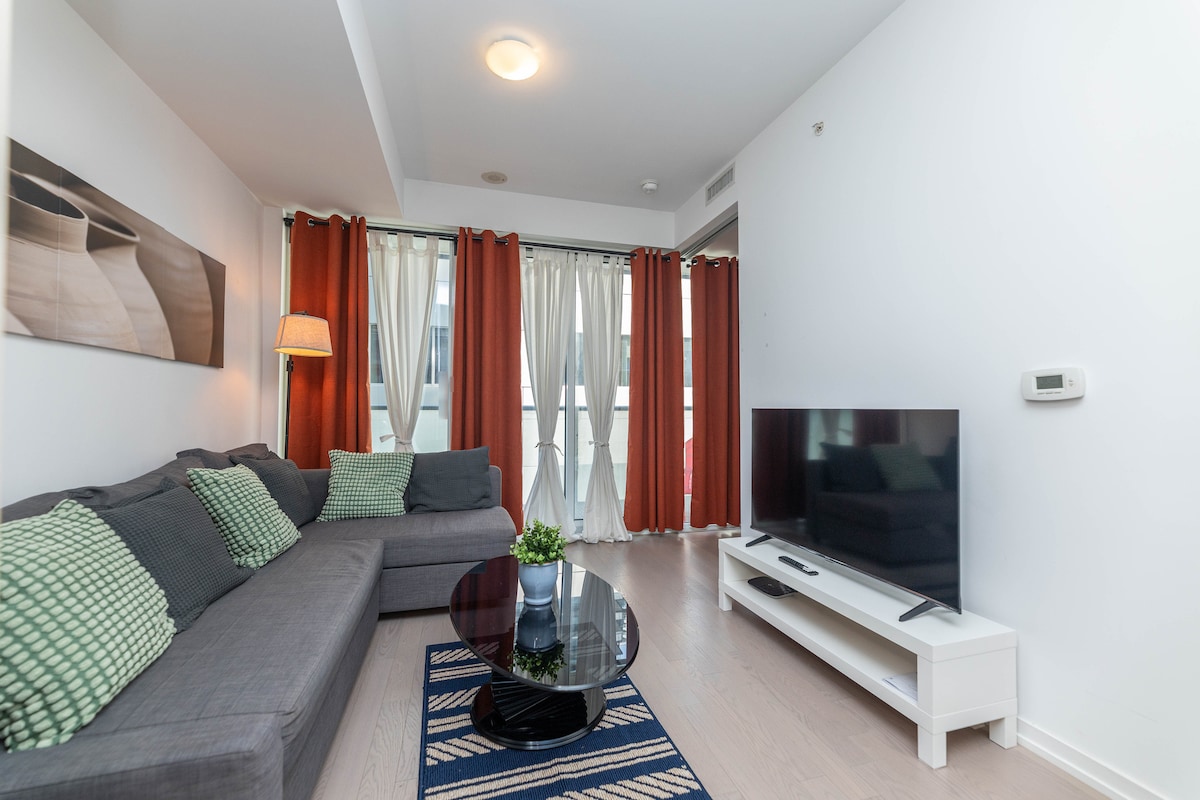Welcome to the Fort York Flat! This 2 Bedroom, 1 Bathroom space has been thoughtfully renovated using a mixture of modern and contemporary decor to create a relaxing, upscale place to kick back while enjoying everything Downtown Toronto has to offer. Our location and smart lockbox located at the front doors makes checking into the flat easier than ever, no need to worry about fussing with the front desk staff or waiting for elevators.