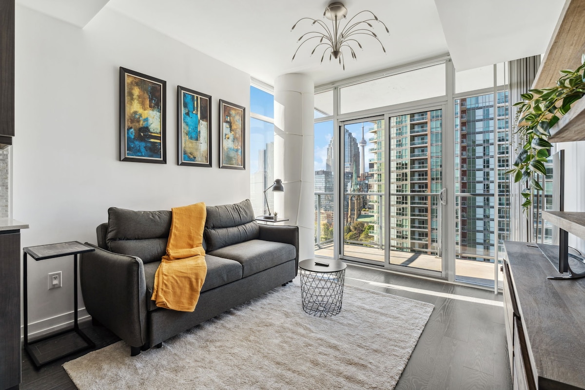 Experience the best of Toronto in our modern one-bedroom plus one sofa bed condo, ideally located in the vibrant heart of the city. Enjoy breathtaking views from a high floor, offering a perfect retreat for urban explorers and business travelers. With easy access to top attractions, including the iconic CN Tower, and excellent commuting options, our condo combines comfort with convenience, making it the ideal base to discover Toronto's charm and energy.