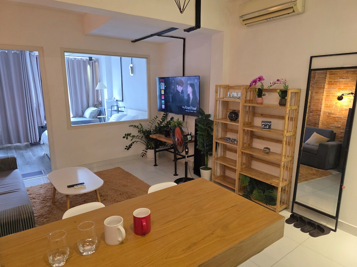 Our place does not just stand out for the city center, well design but also have the host who take care of your stay as well as your experiences by their sincere hospitality Bedroom: We use firm mattresses to support proper posture and provide better spinal alignment. This is ideal for guests who prefer a firmer sleeping surface. Accommodation: The spacious room comfort for 4 people and a child under 5 years old Bathroom: Full utilities (shampoo, shower towels, hair dryer) and hot/cold water.