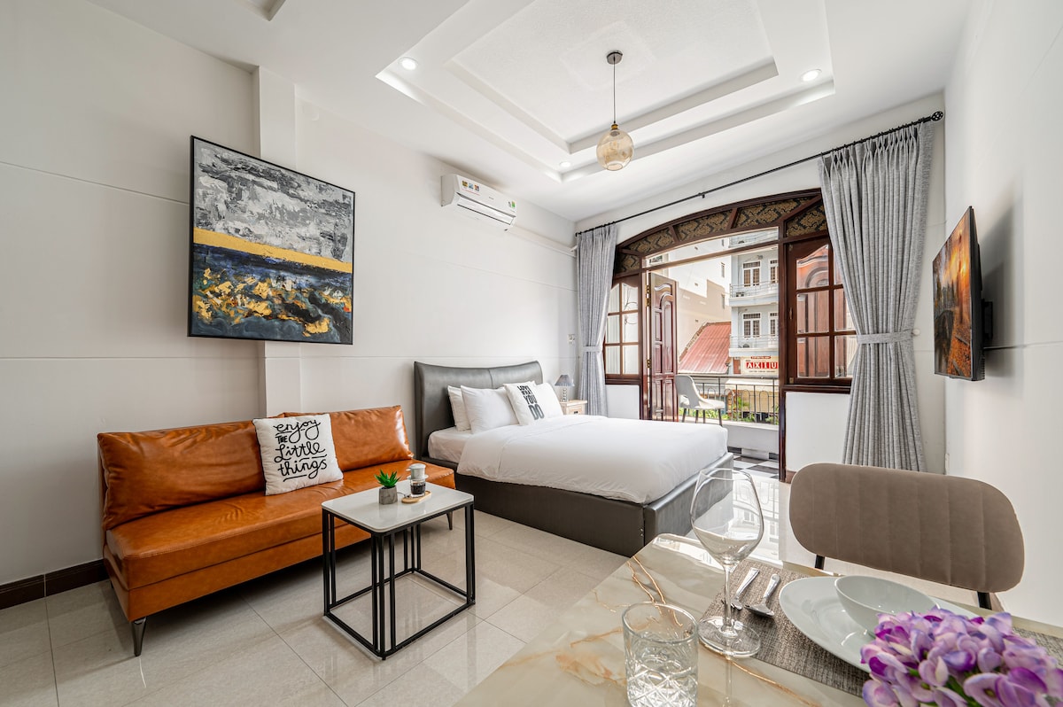 A beautifully designed studio apartment with everything you need, centrally located but hidden away just enough for a peaceful night of sleep away from the heavy city noise. Great for travelers who want to explore Saigon and are looking for quality comfort and a more local experience. - Beautiful swimming pool - Free fast wifi, Cable TV - Free amenities for your living: washer, dryer, AC, fridge, hot water - Kitchen with enough tools for your cooking. Note: Not provide/support VAT invoices